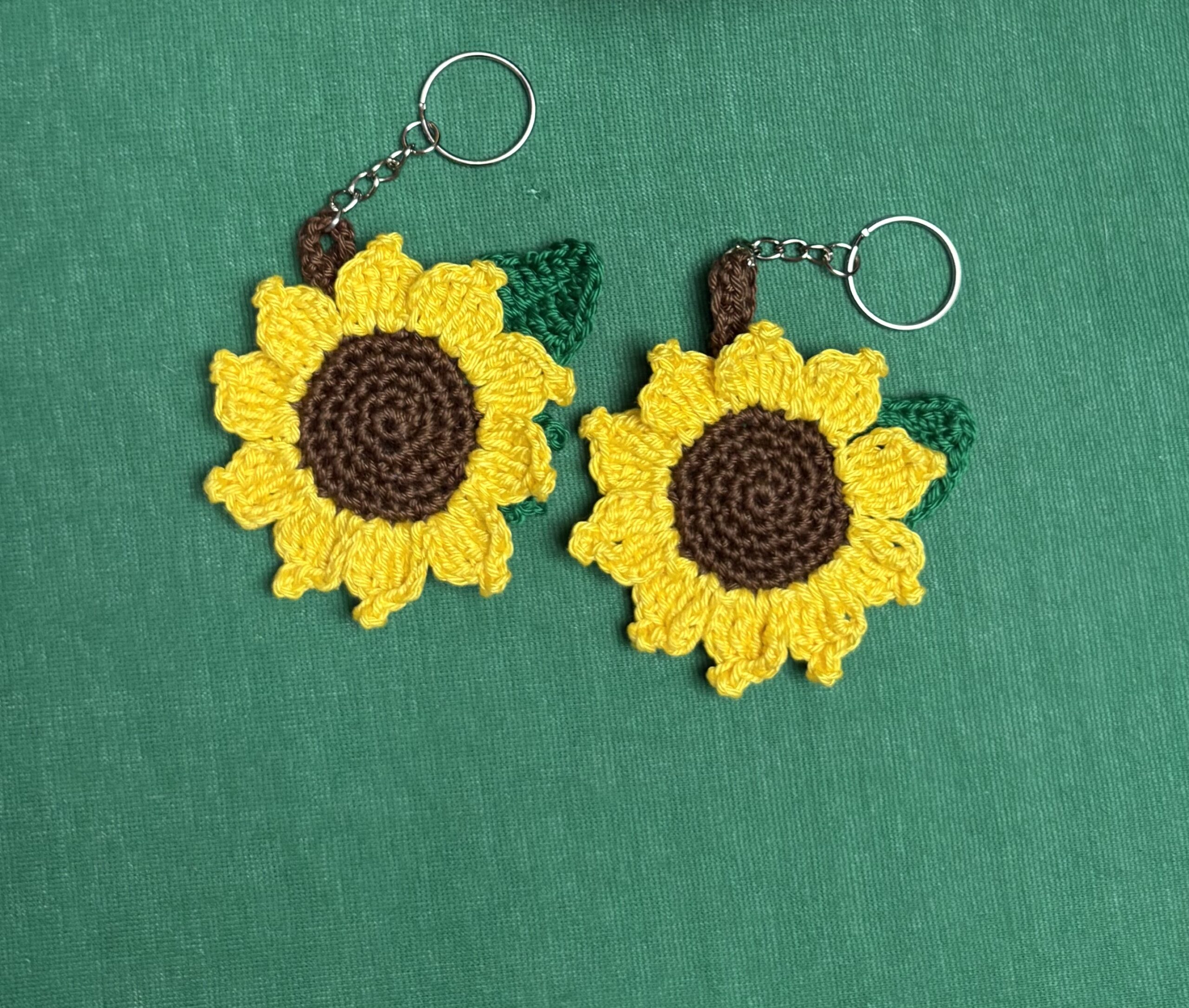 Questo portachiavi girasole è realizzato interamente a mano all’uncinetto, con attenzione ai dettagli e amore per l’artigianato.